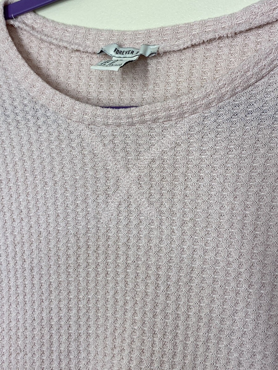 Forever 21 Sweater Womens Size Medium Pink Cropped Waffle Knit Round Neck Spring Ebay