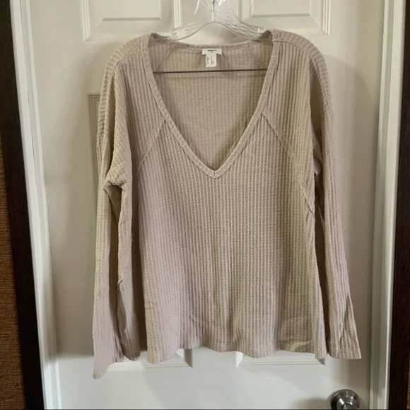 Forever 21 Women 039 S Tan Waffle Knit V Neck Sweater Top Size M Ebay